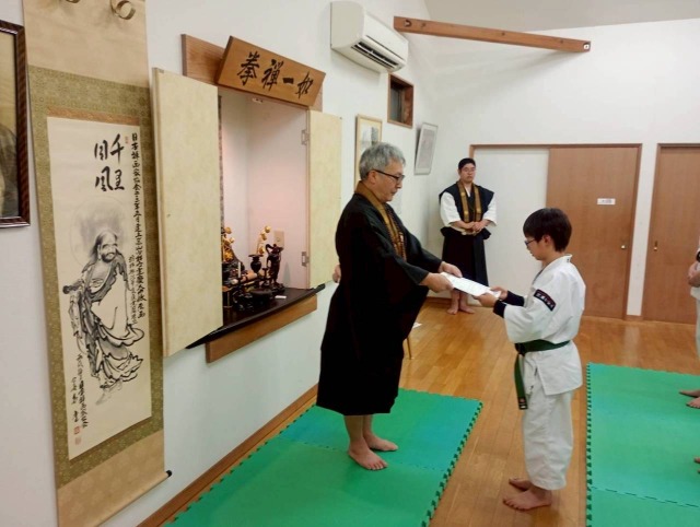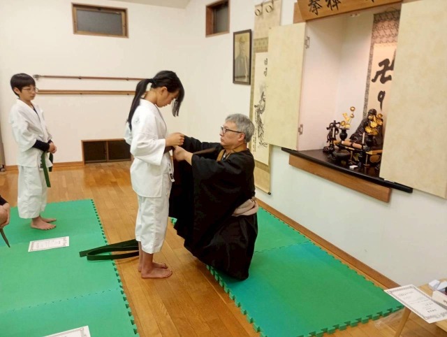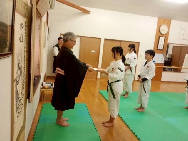 12月に実施された昇級試験の合格証書授与式と帯結び式も実施しました。